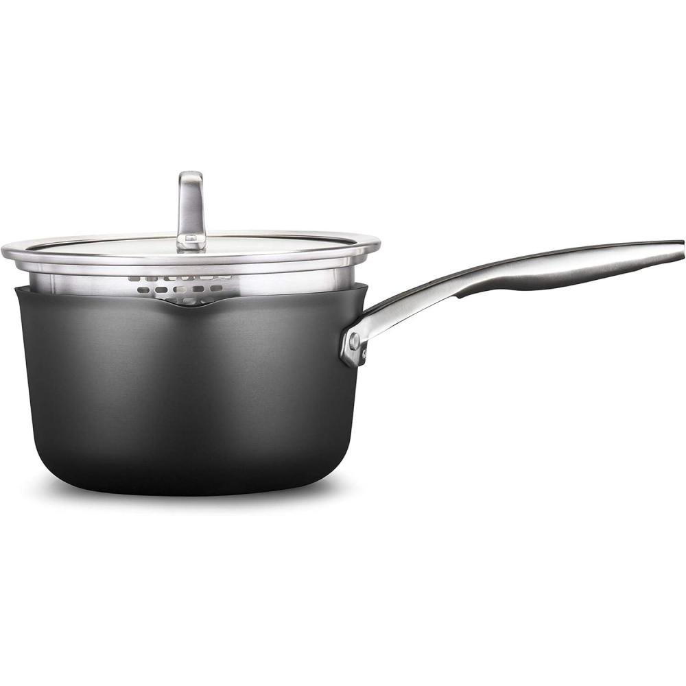 Calphalon 2029659 Premier Hard-Anodized Nonstick 3.5-Quart Pour and Strain Saucepan with Cover, Black