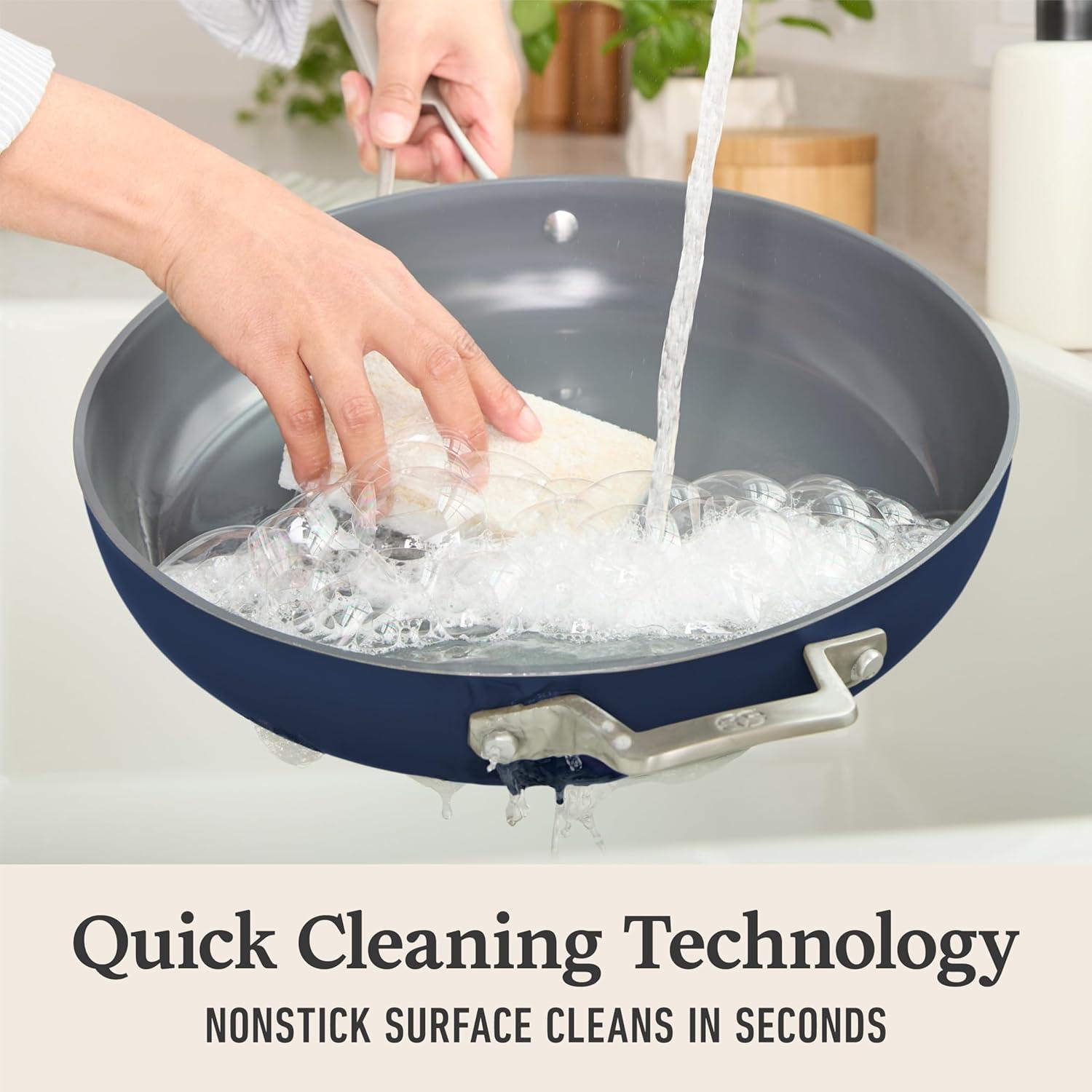 Make every meal a masterpiece with the Calphalon® Premier Ceramic Nonstick Frying Pan. Meticulously designed with robust construction and style, this fry pan is a standout addition to any cookware collection. Embrace pans that look brand new after every use with our Quick Clean Technology, making clean up effortless. Say goodbye to tedious scrubbing and say hello to long-lasting performance. Hard-anodized ceramic-coated aluminum construction delivers fast, even heating while eliminating hotspots for precision searing, sautéing, and browning—ensuring exceptional results every time. Constructed with a PFA-free, scratch resistant and metal utensil-safe ceramic nonstick surface, cooking becomes a pleasure. And with Quick Clean Technology, cleanup's a breeze. Long stainless steel handles stay cool on the stovetop, while pans and tempered glass lids are oven safe up to 500 degrees F for stovetop-to-oven versatility. Calphalon® Premier Ceramic Nonstick frying pans are the must-have tool for any kitchen enthusiast, delivering a gourmet experience from frying fluffy omelettes to perfecting seared scallops and everything in between.