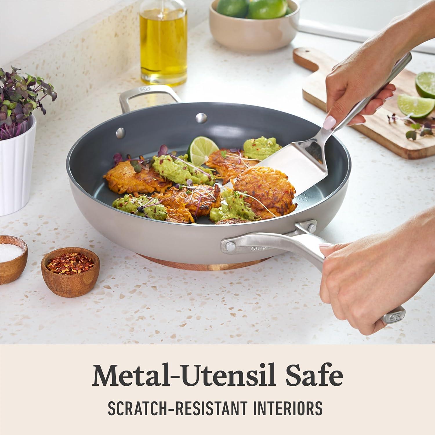 Metal Utensil-Safe: Cooking from scratch deserves scratch-free cookware, so our ceramic pans have scratch-resistant interiors.