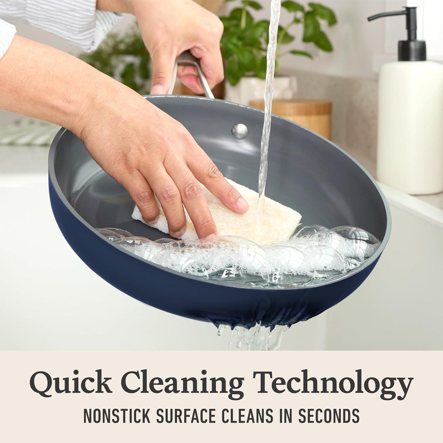 Make every meal a masterpiece with the Calphalon® Premier Ceramic Nonstick Cookware Set. Meticulously designed with robust construction and style, this nonstick pots and pans pan set is a standout addition to any cookware collection. Embrace pans that look brand new after every use with our Quick Clean Technology, making clean up effortless. Say goodbye to tedious scrubbing and say hello to long-lasting performance. Hard-anodized ceramic-coated aluminum construction delivers fast, even heating while eliminating hotspots for precision searing, sautéing, and browning—ensuring exceptional results every time. Constructed with a PFA-free, scratch resistant and metal utensil-safe ceramic nonstick surface, cooking becomes a pleasure. And with Quick Clean Technology, cleanup's a breeze. Long stainless steel handles stay cool on the stovetop, while pans and tempered glass lids are oven safe up to 500 degrees F for stovetop-to-oven versatility. Calphalon® Premier Ceramic Nonstick pots and pans are the must-have tool for any kitchen enthusiast, delivering a gourmet experience from frying fluffy omelettes to perfecting seared scallops and everything in between.