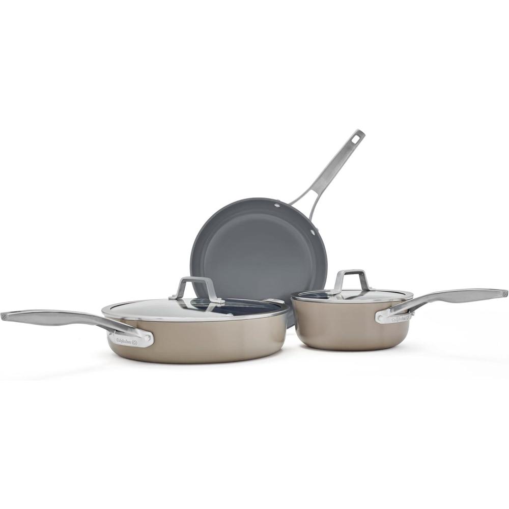 imageCalphalon Premier Ceramic Nonstick 5Piece Cookware Set Mushroom GreyMushroom Grey