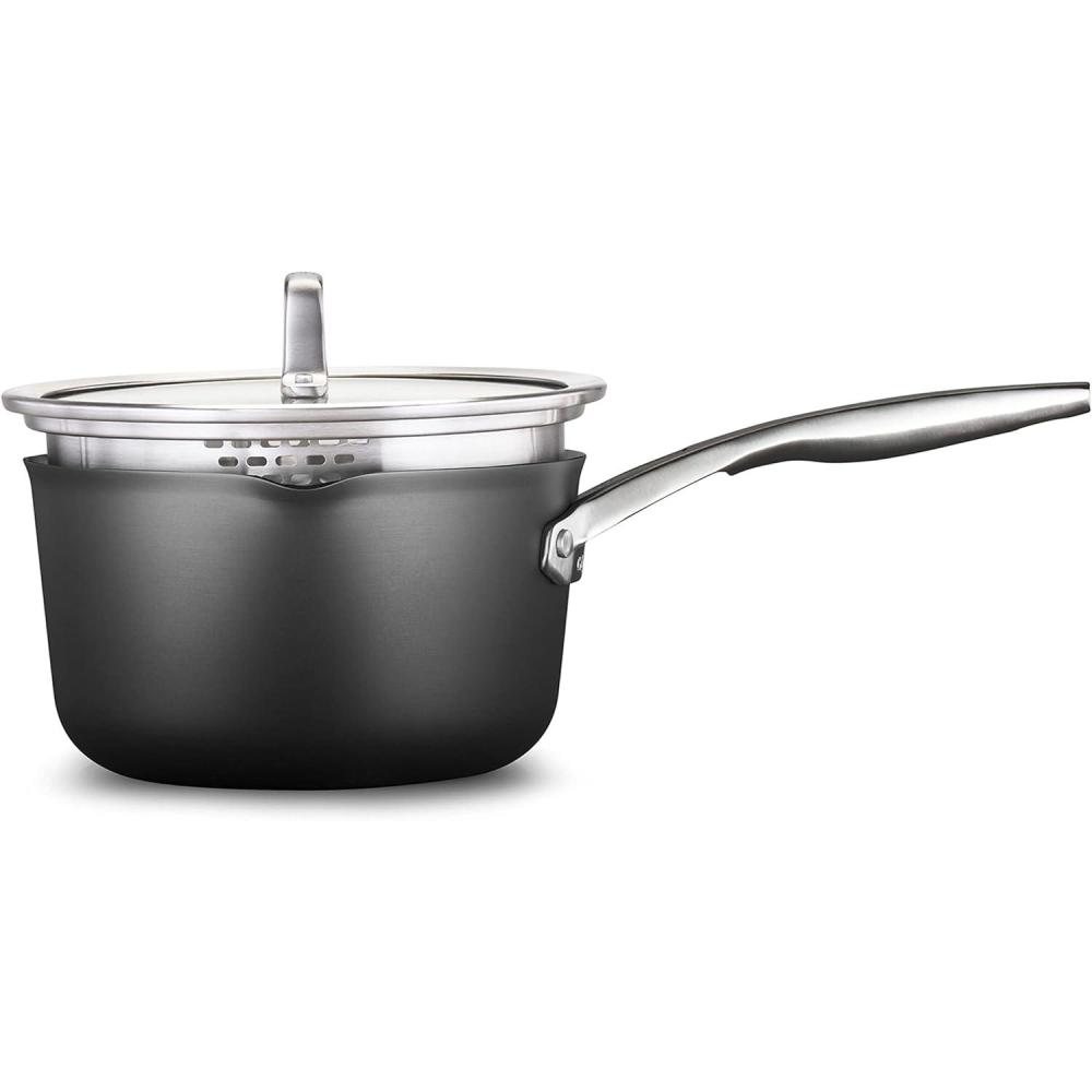 Featuring MineralShield nonstick technology, Calphalon Premier Hard-Anodized Nonstick Cookware is now 5x more durable than before when compared to the previous generation of Calphalon Classic. This nonstick sauce pan delivers superior long-lasting performance for effortless food release over and over again, so you can cook with confidence and serve even the most delicate food with ease. The 3-layer nonstick interior is made with some of the Earth's hardest minerals to withstand metal utensils and everyday use and the hard-anodized exterior is dishwasher-safe for easy cleanup. Calphalon Premier Hard-Anodized Cookware is oven-safe up to 450 degrees F, so the nonstick pots and pans can go from the stovetop into the oven for heating and cooking versatility. Elevate your cooking experience with Calphalon Premier, and enjoy exceptional performance with endless possibilities. Designated Chemical Disclosure: This product contains PTFE, Aluminum, Stainless Steel (Iron, Chromium, Nickel, Manganese, Copper, Phosphorus).