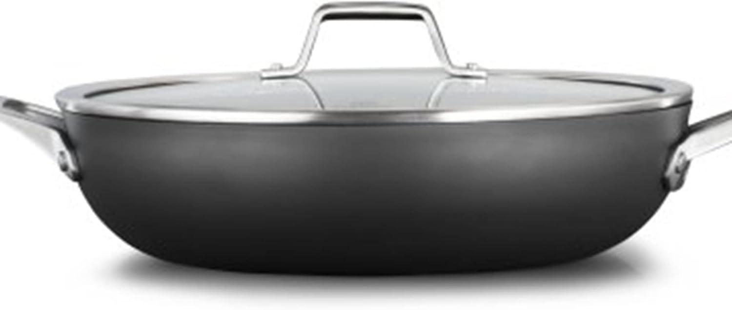 Whether you're feeding your family or cooking for a crowd, the Calphalon Premier Hard-Anodized Nonstick 13-Inch Deep Skillet has the capacity you need for large-scale meals. The nonstick interior delivers a longer-lasting, superior nonstick performance—40% longer than Calphalon Classic—for effortless food release, so you can cook with confidence and serve even the most delicate food with ease. The durable, 3-layer nonstick interior is tough enough to withstand metal utensils and everyday use, and the hard-anodized exterior is dishwasher-safe for easy cleanup. Calphalon Premier Nonstick pots and pans are oven-safe up to 450 degrees F, so they can go from the stovetop to the oven for heating and cooking versatility. Unlock your culinary genius with Calphalon Premier, and experience superior cookware that's built to last.