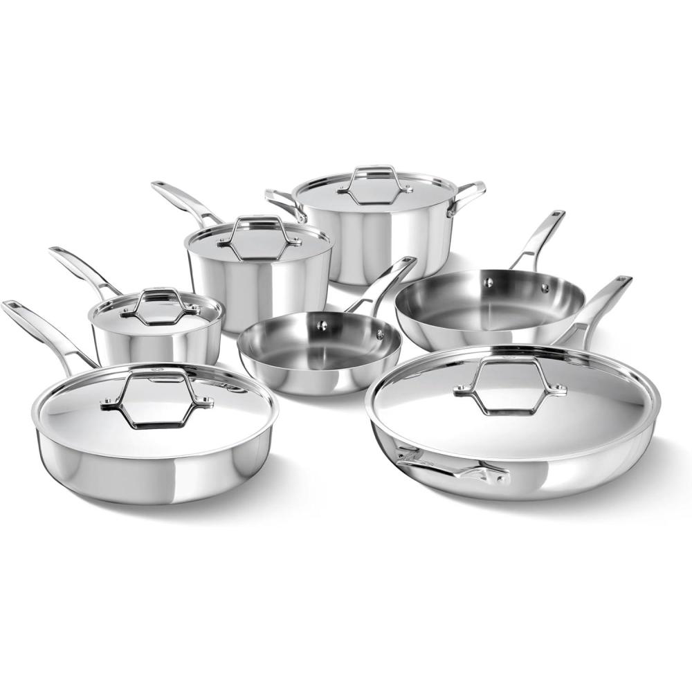 Calphalon Premier Stainless Steel Cookware delivers precision cooking performance, with an elegant, classic look that will inspire any chef. The 3-layer metal construction features a heavy-gauge aluminum core that distributes heat evenly and allows you to brown, sear, and saute with consistency and confidence. The elegant stainless steel finish is dishwasher-safe for easy cleanup. Calphalon Premier Stainless Steel Cookware is oven-safe up to 450 degrees F so it can go from the stovetop to the oven for heating and cooking versatility. Unlock your culinary genius with Calphalon Premier, and experience superior cookware that's built to last. Designated Chemical Disclosure: This product contains Aluminum, Stainless Steel (Iron, Chromium, Nickel, Manganese, Copper, Phosphorus).