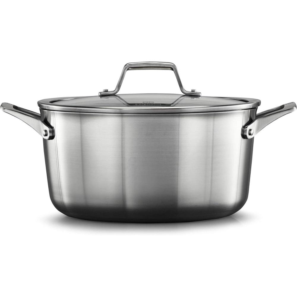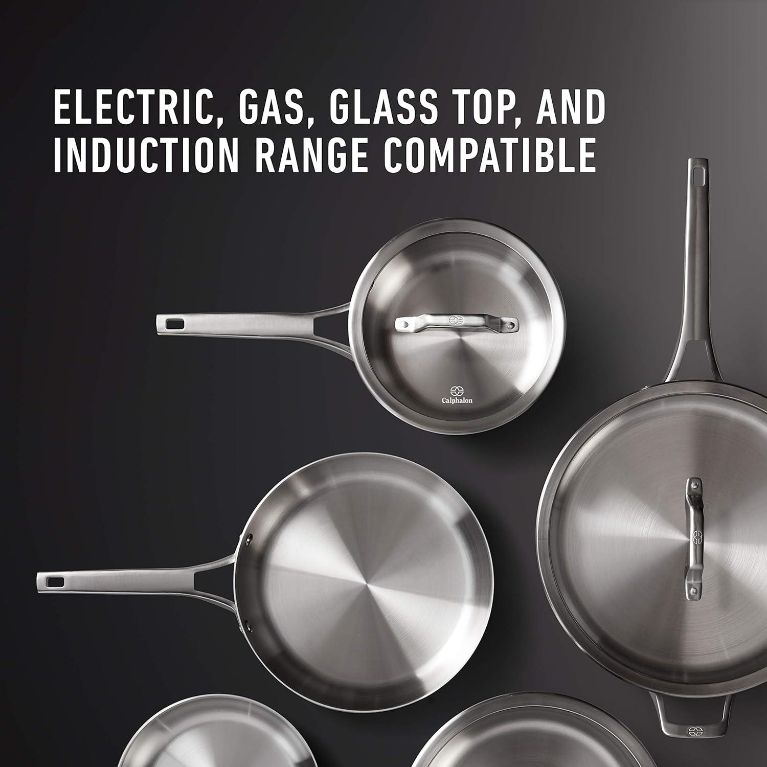 Calphalon Premier Stainless Steel Cookware delivers precision cooking performance, with an elegant, classic look that will inspire any chef. The 3-layer metal construction features a heavy-gauge aluminum core that distributes heat evenly and allows you to brown, sear, and saute with consistency and confidence. The elegant stainless steel finish is dishwasher-safe for easy cleanup. Calphalon Premier Stainless Steel Cookware is oven-safe up to 450 degrees F so it can go from the stovetop to the oven for heating and cooking versatility. Unlock your culinary genius with Calphalon Premier, and experience superior cookware that's built to last. Designated Chemical Disclosure: This product contains Aluminum, Stainless Steel (Iron, Chromium, Nickel, Manganese, Copper, Phosphorus).